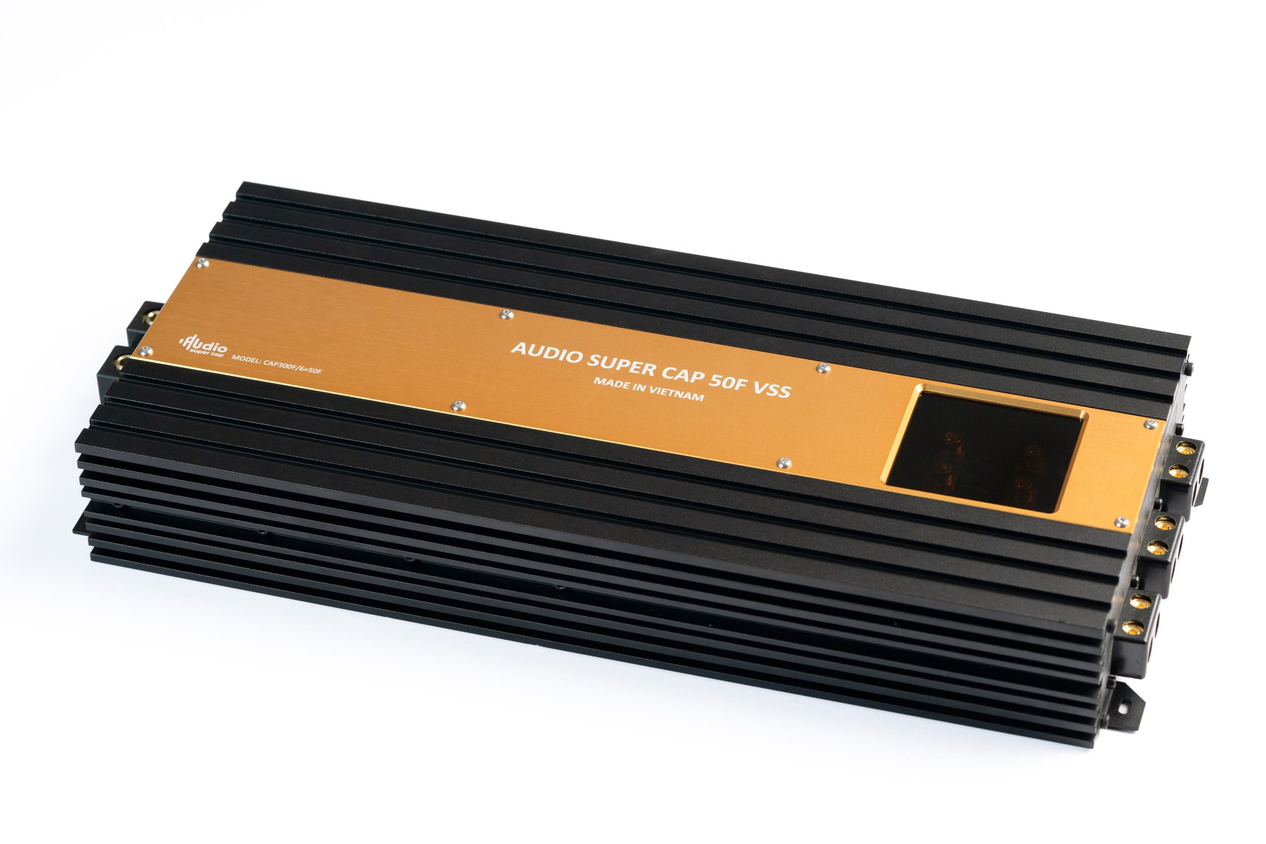 Được sản xuất tại Việt Nam, CAP300F/6=50F VSS có tổng điện dung là 50F cấp dòng xả hiệu dụng liên tục 70A, tối đa 200A trong khoảng thời gian 500 mili giây hoặc 2.880W(ở điện áp 14.4v). Thiết bị giúp hệ thống âm thanh hoạt động ở hiệu suất tối ưu, bất kể sự biến động của nguồn điện đầu vào. Đây là giải pháp lý tưởng để duy trì hiệu điện thế ổn định trong khoảng 12–14.8V, đảm bảo các thiết bị như âm ly hoặc DSP luôn vận hành ở ngưỡng lý tưởng 14.4V – mức chuẩn mà các nhà sản xuất thiết bị âm thanh khuyến nghị.